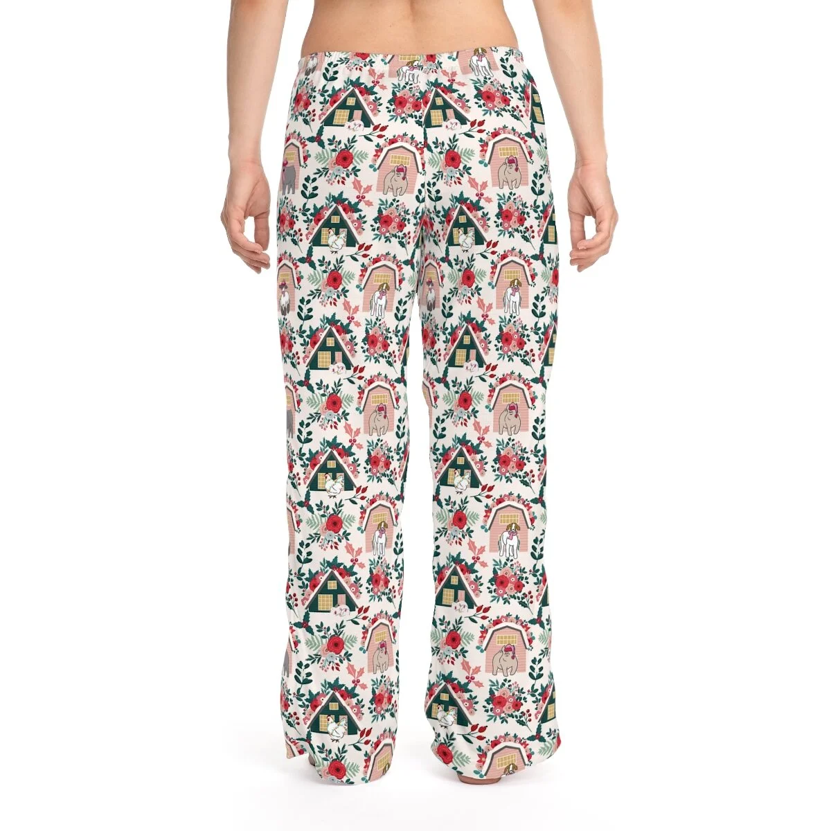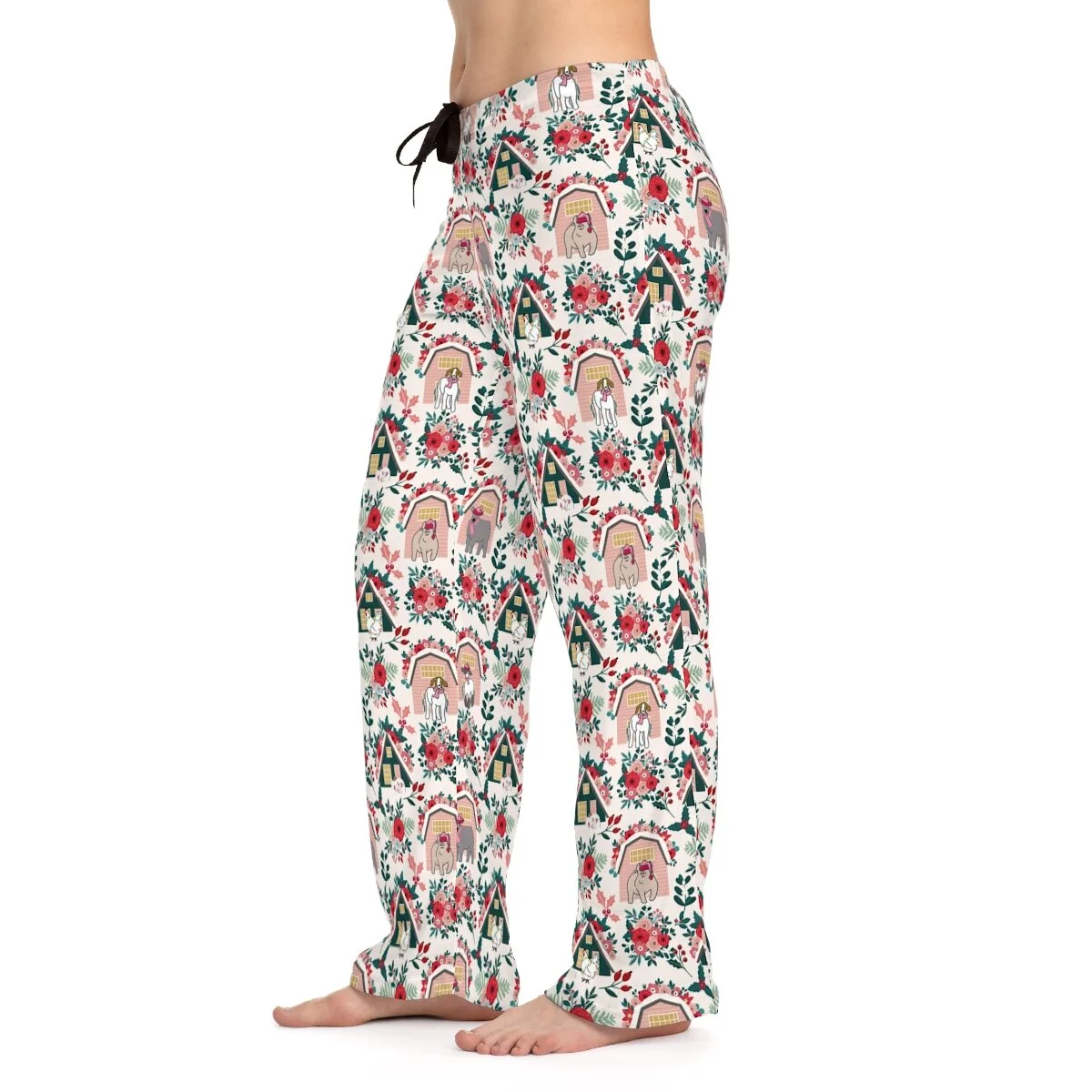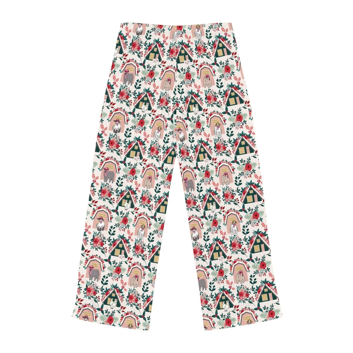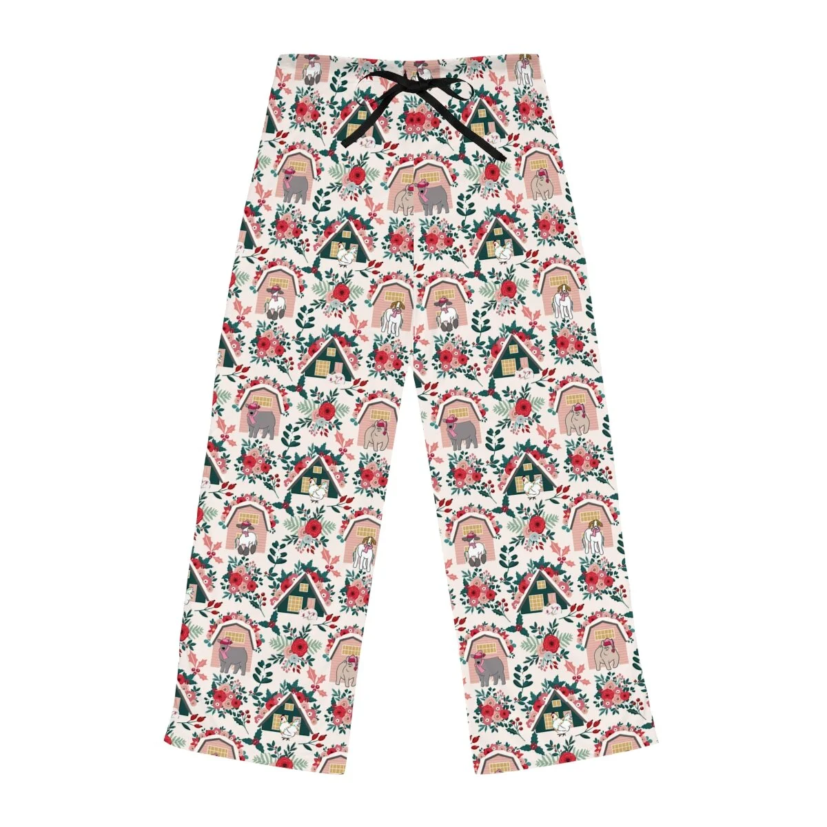 Floral Pink Christmas Livestock Women's Pajama Pants