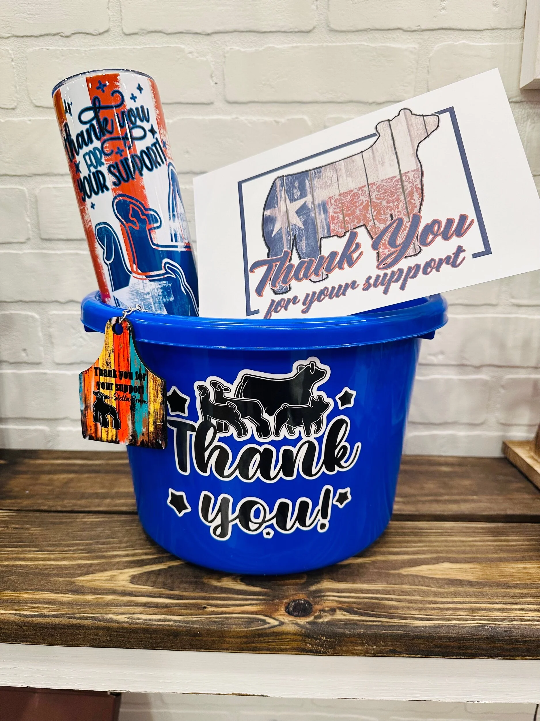 Custom Blue Wooden Livestock Thank You Tumbler